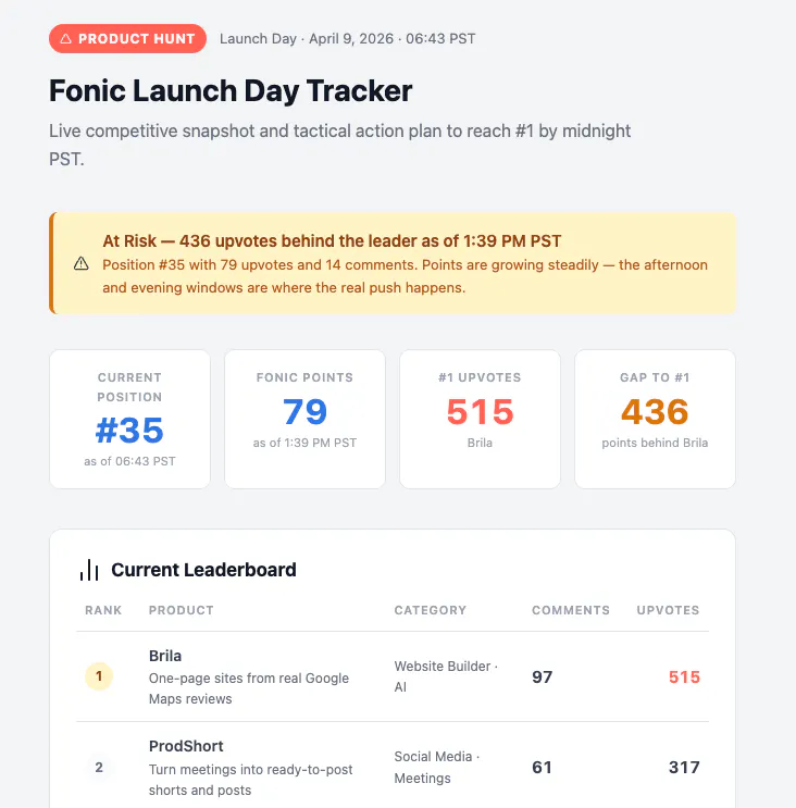 Fonic.ai turns scattered inputs into professional, interactive reports in minutes. Connect your tools via MCP or paste your raw material, and it automatically generates a polished report ready to share (the more diverse your inputs, the richer the report!). Recipients can chat with an AI inside the report and approve action items, eliminating endless back-and-forth across emails or threads. Use Fonic for weekly updates, campaign recaps, project summaries, and more. Fully free while in beta.