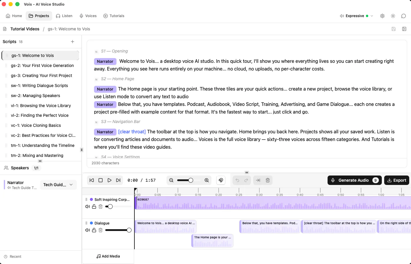 What you said about keeping everything local with unlimited use on one subscription, that's really the heart of why Vois exists. I never liked the cloud model where you pay per character just to hear how a small edit sounds. Here you can iterate as much as you want without watching a meter tick up.