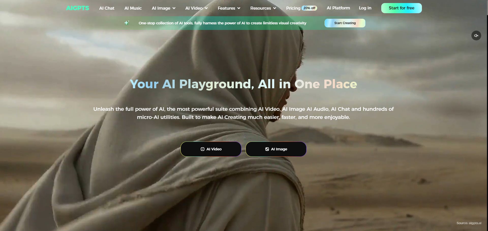 AIGPTS is an integrated AI creation platform designed to consolidate disparate AI tools into a unified workspace, allowing users to complete various AI creation tasks such as videos, images, music, and chat without switching between multiple websites.