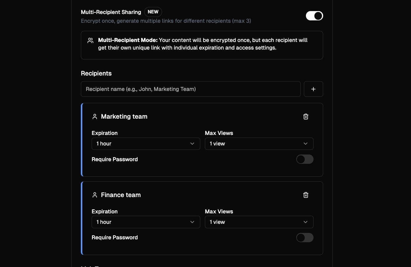 We're excited to introduce Multi-Recipient Sharing - a powerful new way to securely share sensitive information with multiple people at once, each with their own unique access controls.