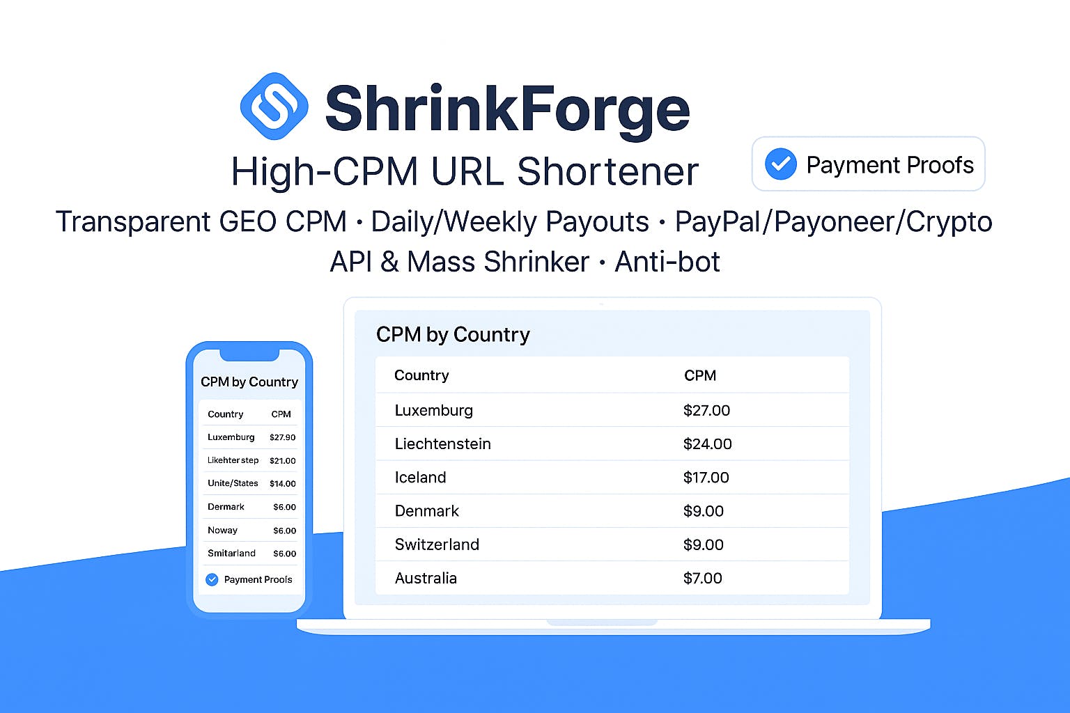 Hey PH! I m co-maker of ShrinkForge, a clean high-CPM URL shortener for creators and publishers.