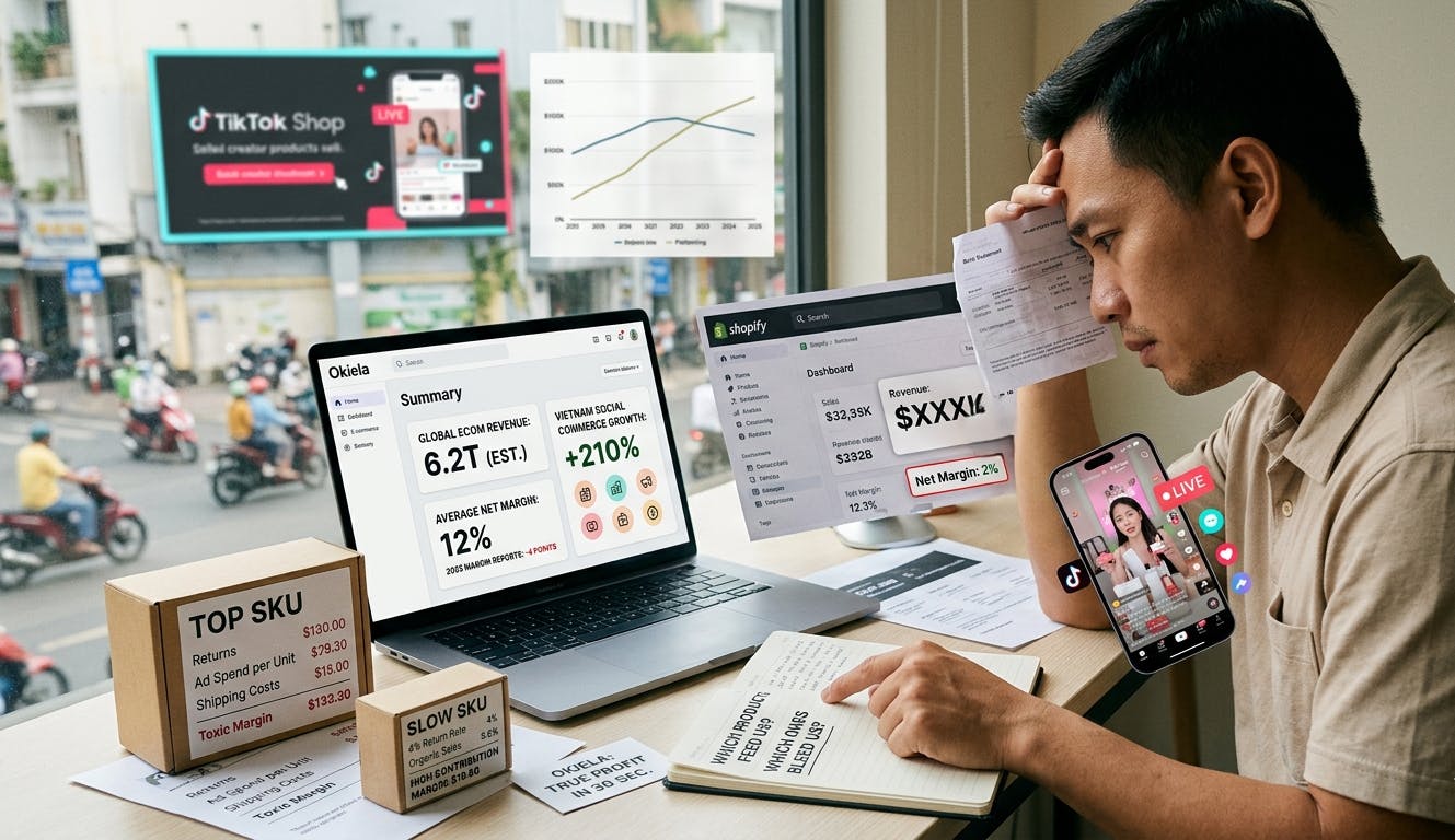 Building Okiela from Vietnam, I saw a gap: Shopify founders are overwhelmed by tools that cost $129+/mo and leak their data.