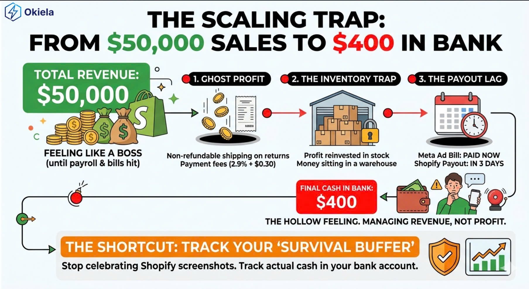 The Shortcut: Stop celebrating Shopify screenshots. Start tracking your "Survival Buffer" in your bank account.