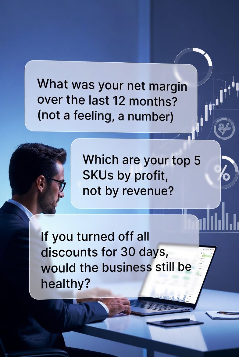 "Have you ever calculated contribution margin per SKU after returns, actual shipping cost, and ad spend per unit?"