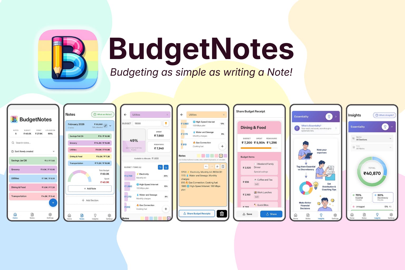 I made a budgeting app that makes Budgeting as simple as writing a Note✍️! A fusion of traditional pen & paper budgeting with mathematical capabilities of digital devices. Here, if you write 15 Potatoes 50 Bananas It will create a Budget List. Its that simple! And if you add a .(dot) and write anything, say .potatoes for making French Fries, that becomes your note. All stays in one place. One beautiful combined place full of calming pastel colors helping you make better financial decisions.