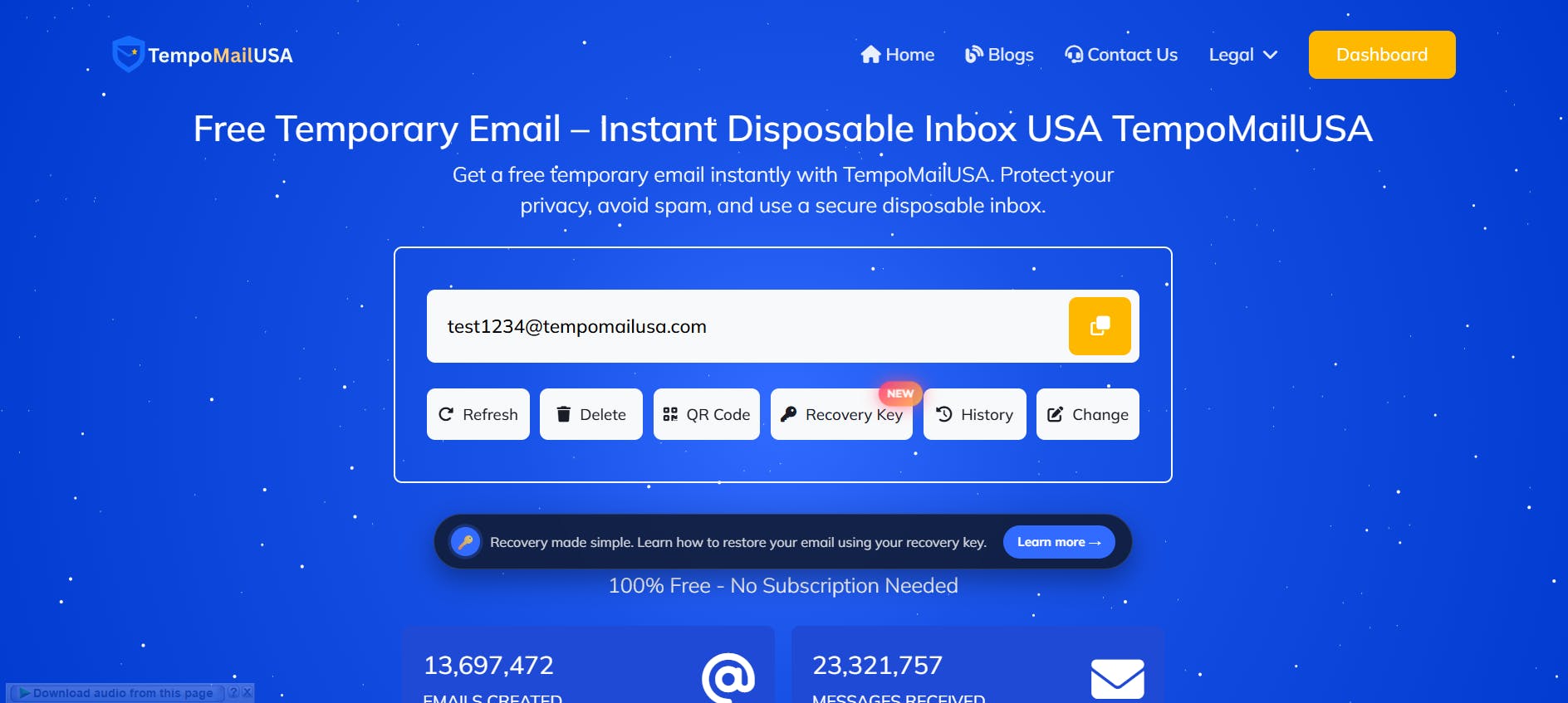Get a free temporary email instantly with TempoMailUSA. Protect your privacy, avoid spam, and use a secure disposable inbox. No registration, fast delivery, USA-optimized servers, and automatic deletion