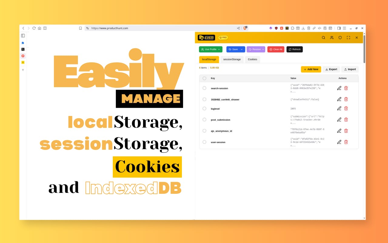 Easy Local Storage ManagerManage localStorage, sessionStorage, Cookies and IndexedDB- Easy Local Storage ManagerNov 2025