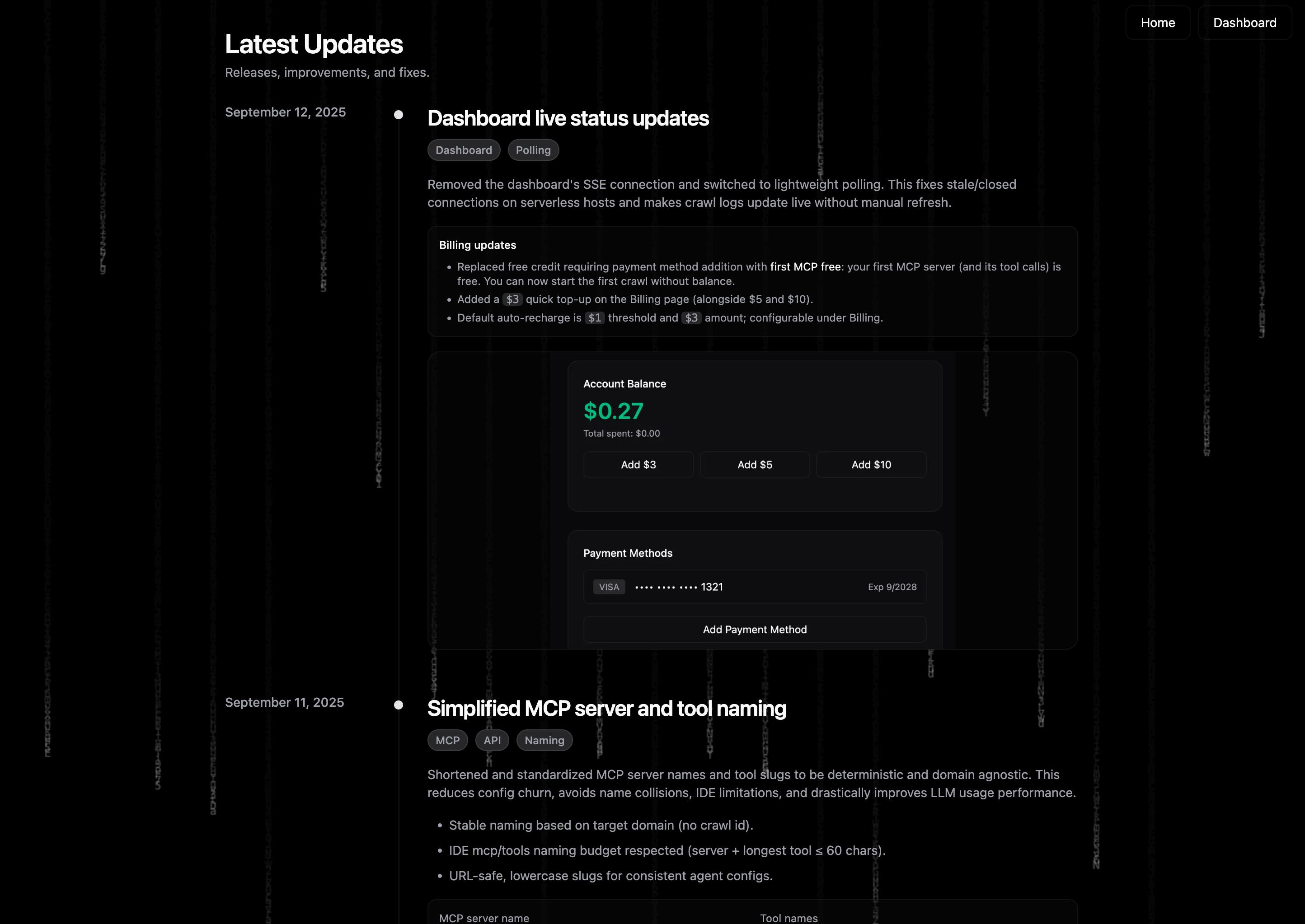As first paying customers were acquired (50%) of active users, we rolled out an updates page to show the relevant work users must know about, plus all under the hood (performance, scalability, reliability work) doqment.dev/updates