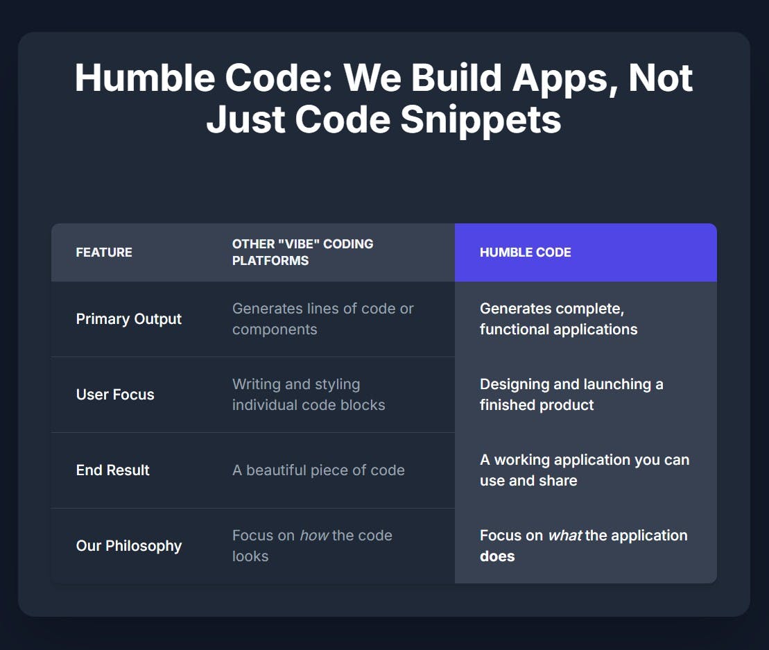 At Humble Code, we don't build apps, we generate them. As CEO and Co-Founder, I lead a team that has created a software generation engine designed for the AI era. Our platform translates user requirements into full-stack, production-ready applications. By harnessing advanced generative AI, we construct everything from the user interface to the back-end logic for websites, mobile apps, and enterprise workflows. We then infuse these applications with powerful conversational AI to create truly intelligent and interactive experiences. We are enabling individuals, SMEs, and enterprises to innovate faster by fundamentally changing the development lifecycle from months to minutes.