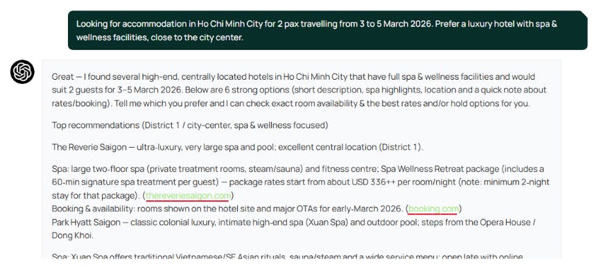 Many brands show up frequently in AI-generated answers but when users ask for what to do next (book, buy, visit, compare), the AI often cites a different source. In many cases, that source is not the brand s own website.