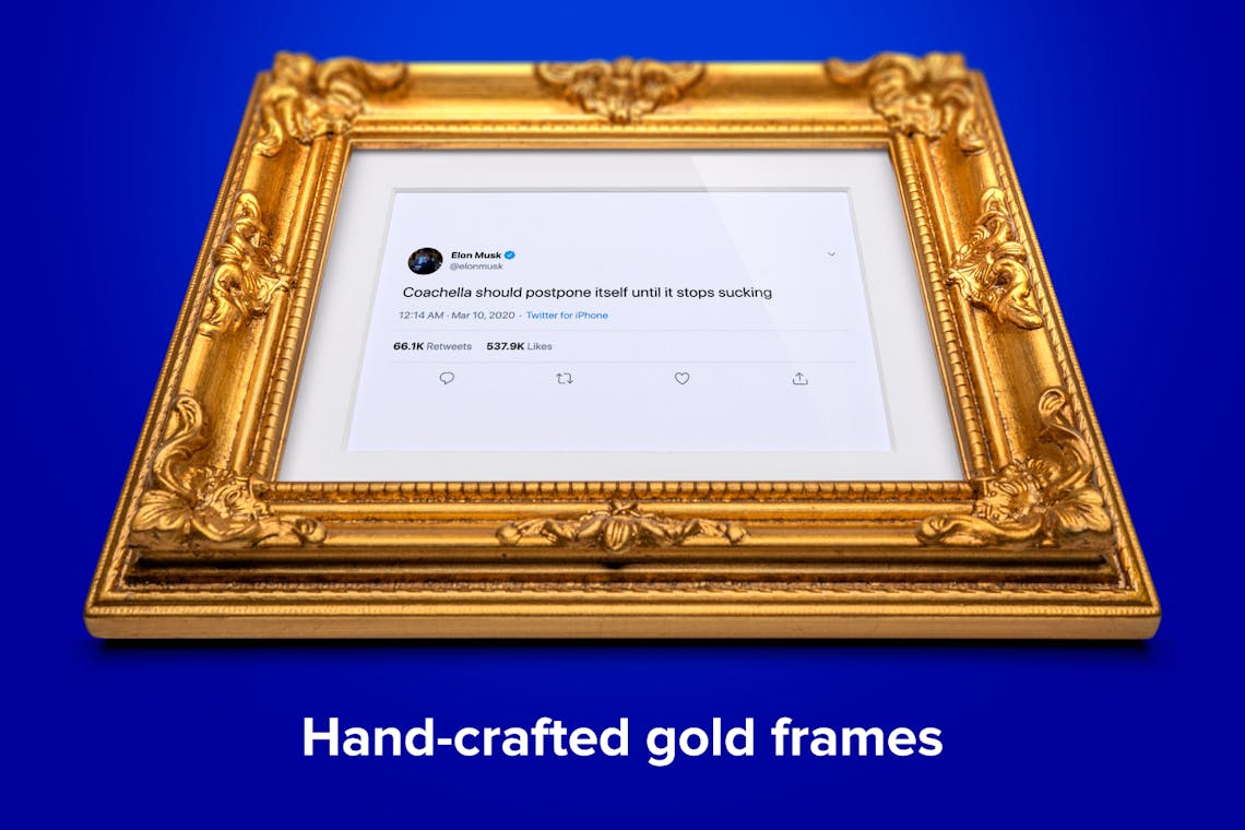 With Framed Tweets you can pick any tweet (edit it if you want) and they’ll ship it to you in an ornate, hand-made, gold frame.