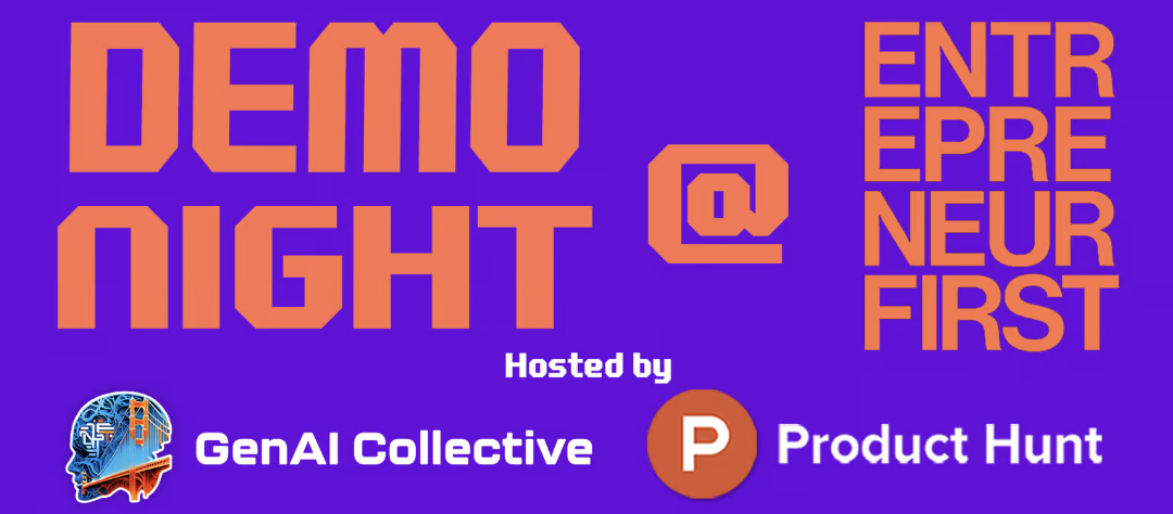 SF-based builders! Looking for something to do? Join us tomorrow, February 5th for a special demo night hosted by the GenAI Collective, Entrepreneur First and Product Hunt. We'll be hand-selecting 8 demoists – the best of the best – to show off their products and technology to the world! Want to demo? There's still space, RSVP and apply below.