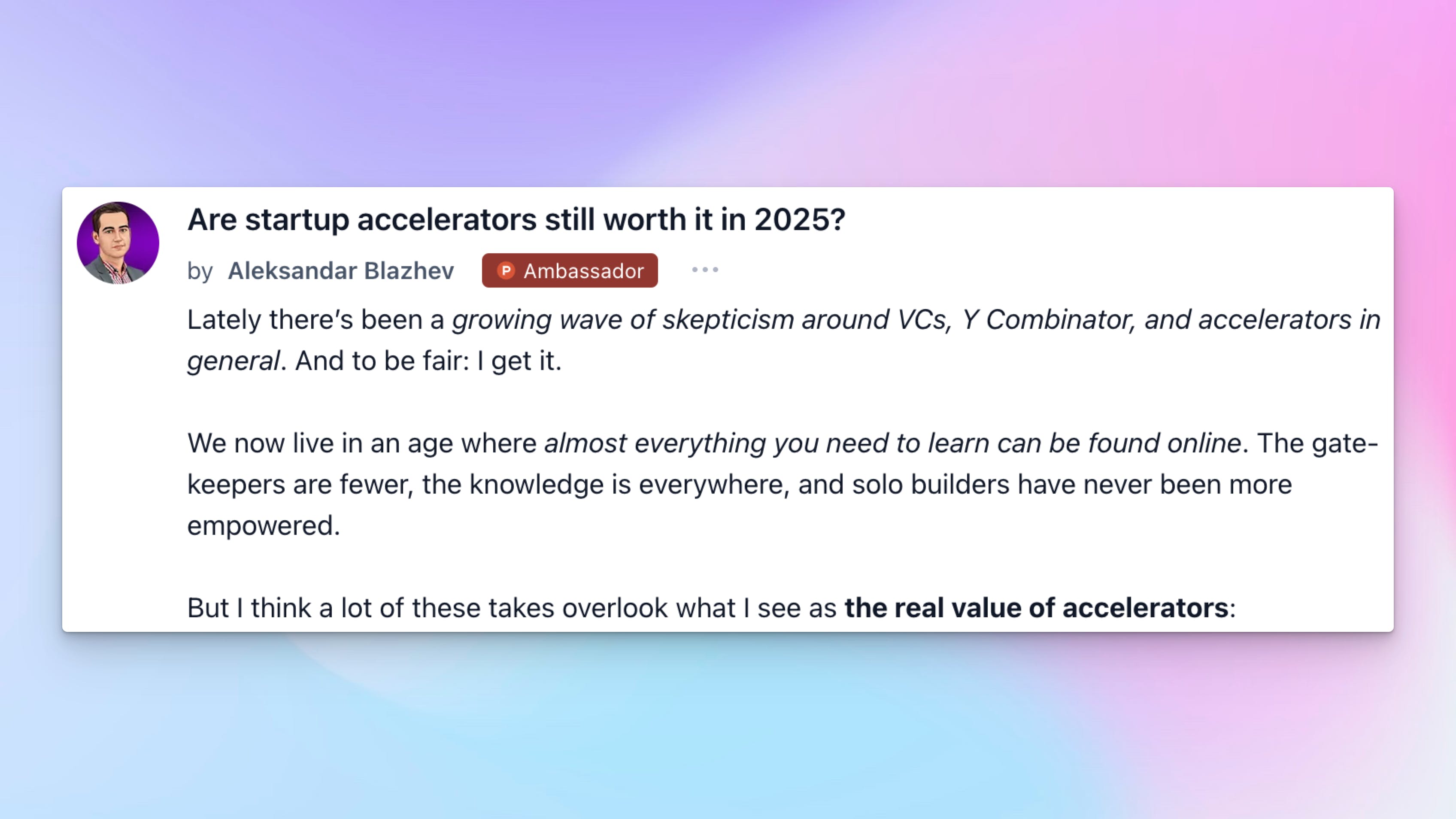 Aleksandar asks: “Are startup accelerators still worth it in 2025?”