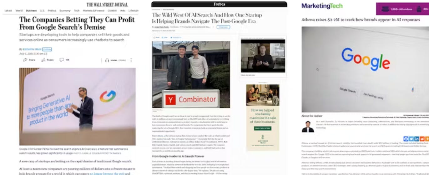 The Wall Street Journal rarely covers seed-stage startups — let alone one raising just $2.2M. That’s why I was surprised to see Athena, an early-stage company working on how large language models surface brand-related content, featured in Katherine Blunt’s article about the demise of traditional Google search.