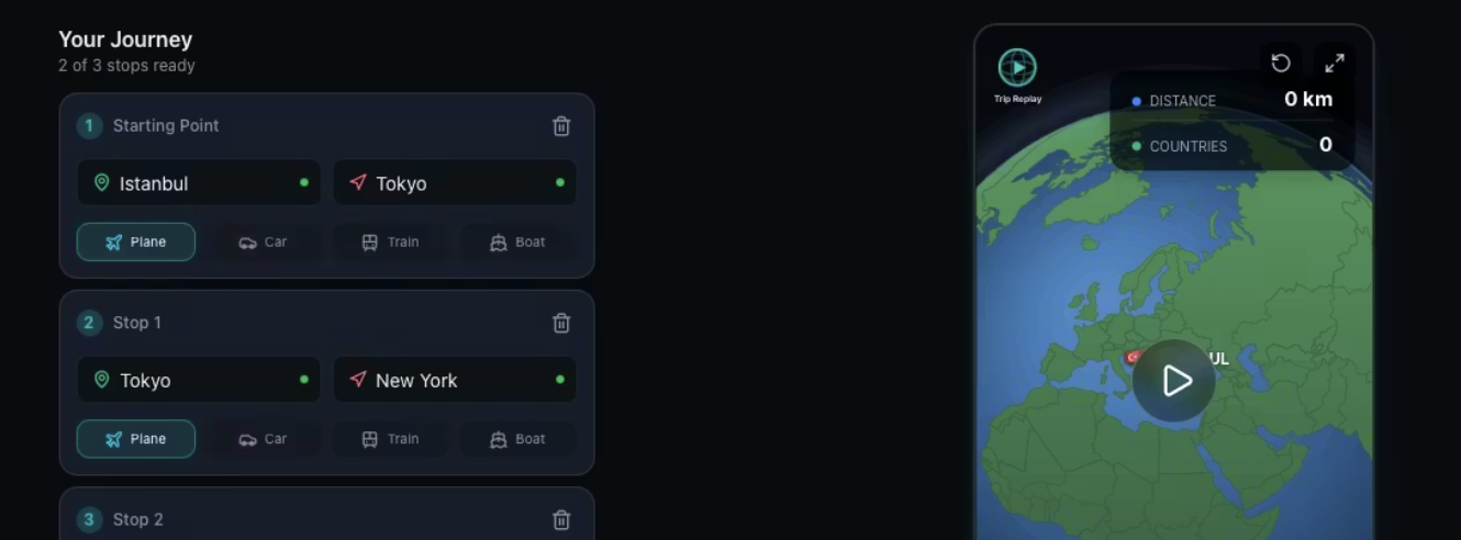 Trip Replay turns your travel routes into vertical, social-ready videos. You drop in your stops, pick how you moved between them, and it generates a cinematic map animation in the browser. No sign-up, no uploads, nothing leaving your device, and itâs free so you are not paying per export just to post one trip.
