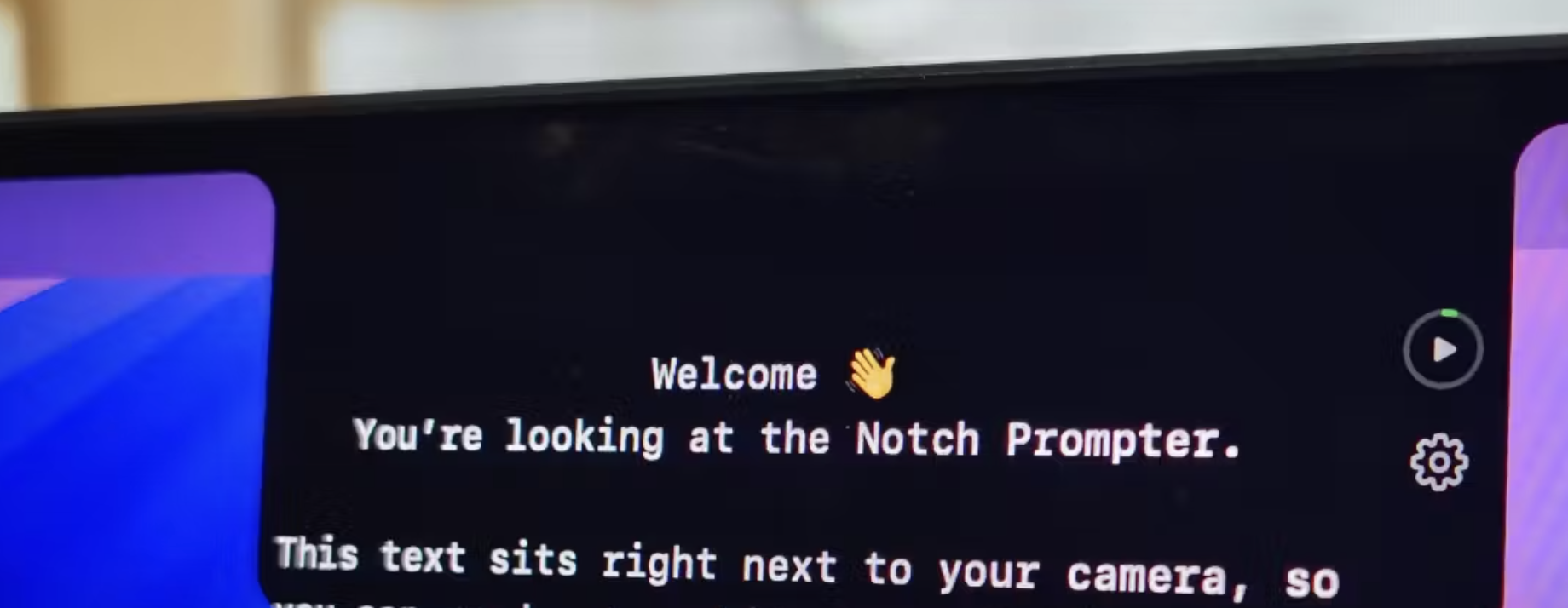 Notchie turns your MacBook notch into a tiny teleprompter. Your script sits right under the camera, scrolls along as you talk, and pauses when you do, so you can keep eye contact on Zoom, Meet, or Loom without juggling notes on a second screen.