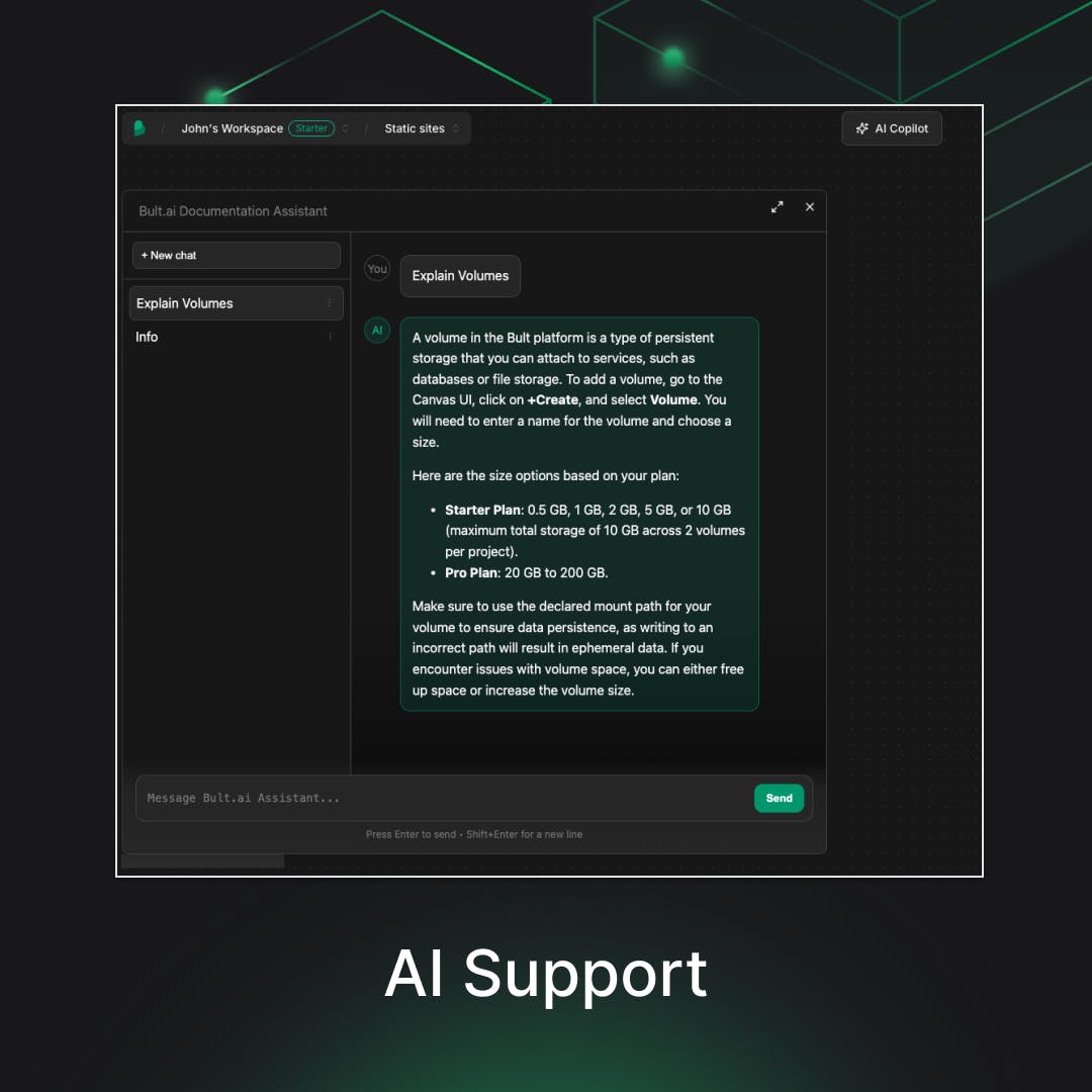 Users can now get instant answers to questions about the platform and documentation at any time. The AI assistant is available 24/7 and helps developers onboard faster, resolve issues quickly, and understand how to use Bult.ai more effectively.