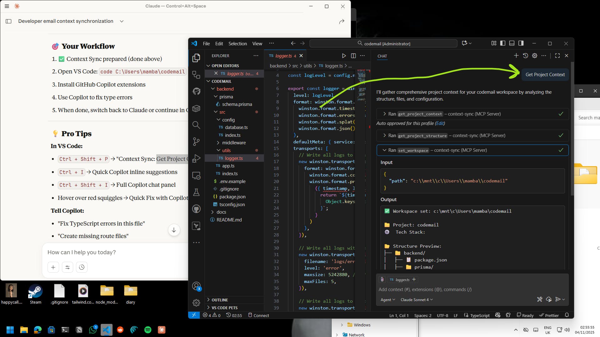 let's build a “developer email” with Claude → VS Code → Cursor using Context Sync (no .md files)