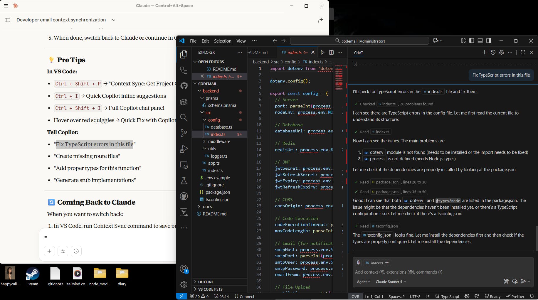 okay they type errors are solved with copilot now let us go back to Claude to continue with our project