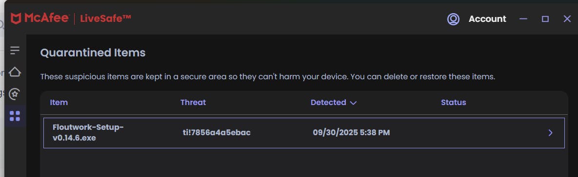 @himanshu_tydΒ - Thank you for sharing the screenshots, that really helps. It looks like McAfee is flagging the installer, but this is almost certainly a false positive since many users have installed Floutwork without any issues. Sometimes new apps get flagged by antivirus tools until they build up more reputation. Could you share the exact threat name or details McAfee provides? I will also reach out to McAfee to investigate and get this cleared.