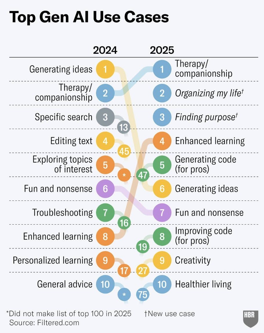 The last thing I am sharing – the infographic by Harvard Business Review on how we started using AI in 2025 compared to 2024: