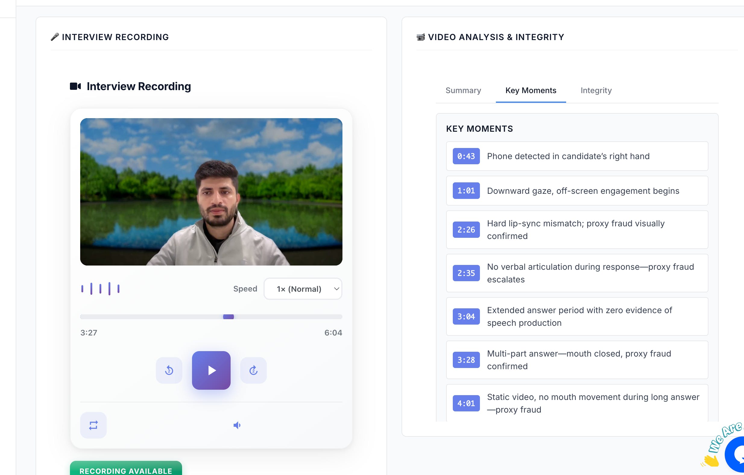 Instead of just recording interviews, we now surface key integrity moments automatically, so recruiters can review only what matters.