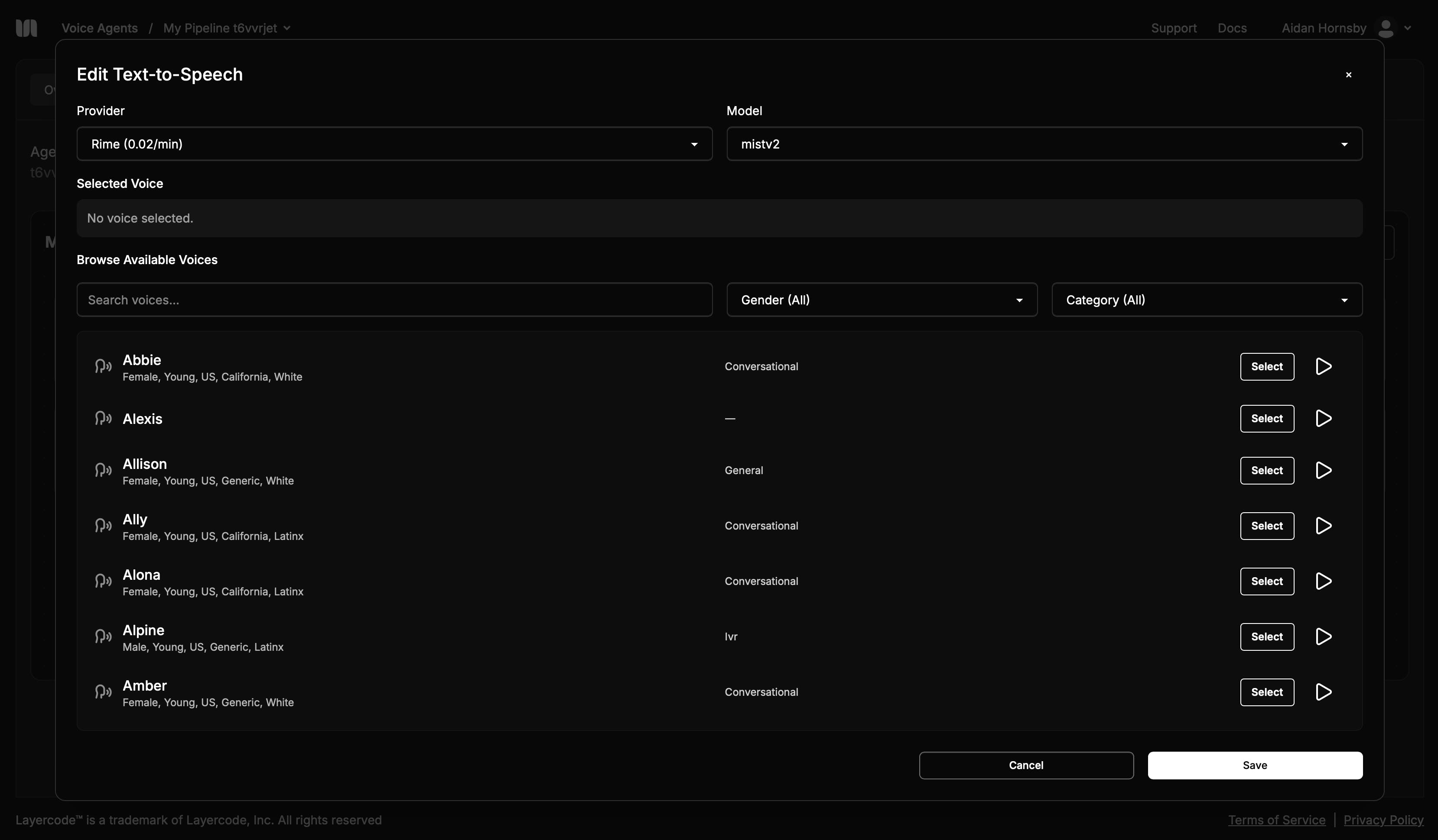 We’ve completely overhauled the voice picker UI with search, filters and voice previews for voices from Rime, ElevenLabs and Cartesia.