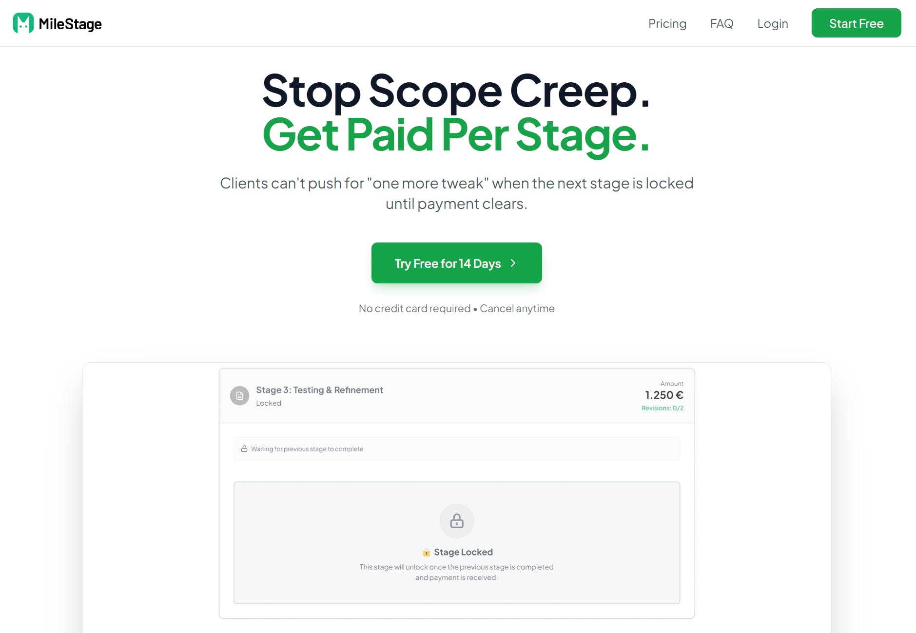 Dead simple milestone payment tracking for freelancers. Automated reminders, stage locking, zero transaction fees. Stop chasing payments, prevent scope creep.
