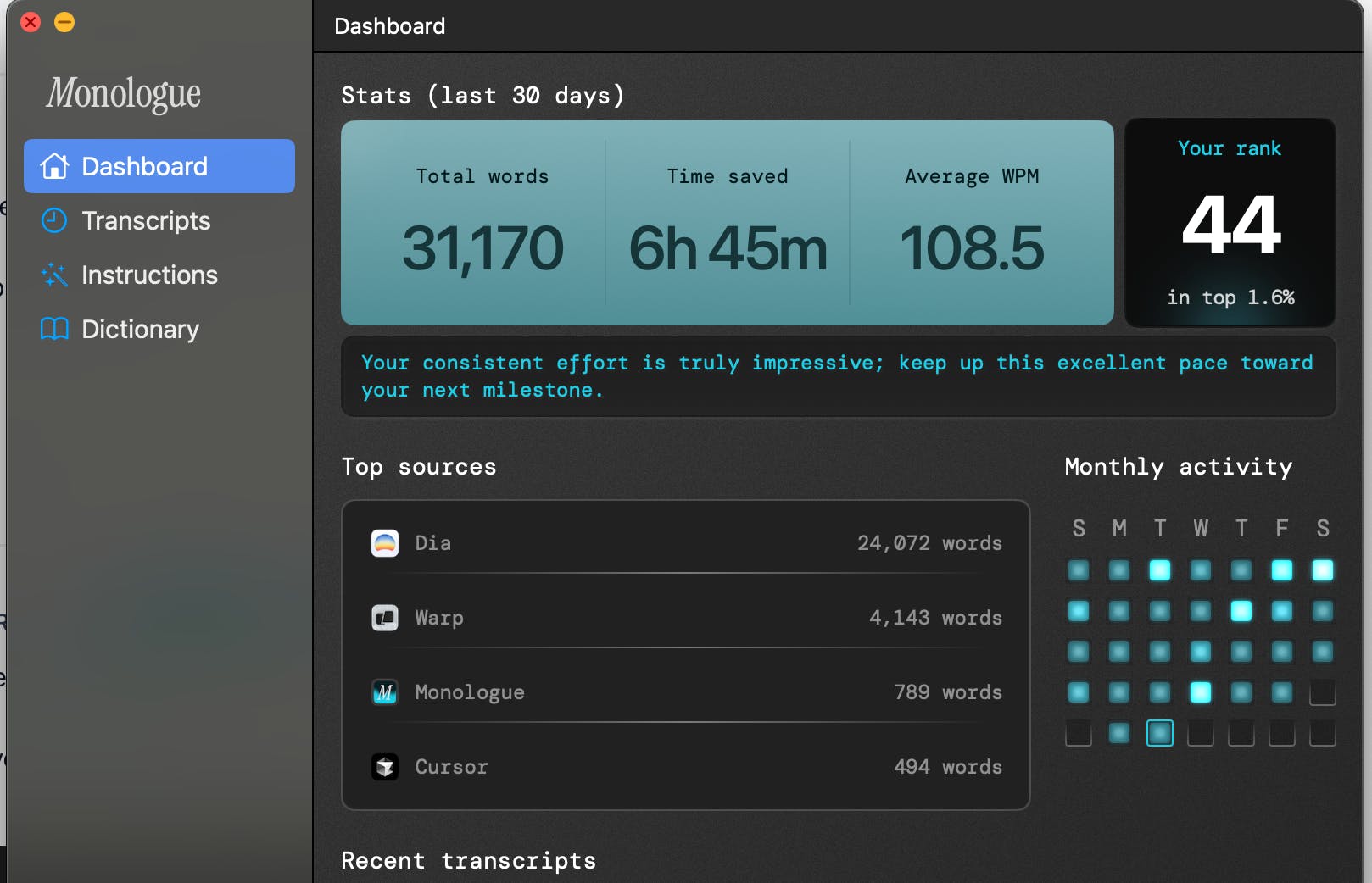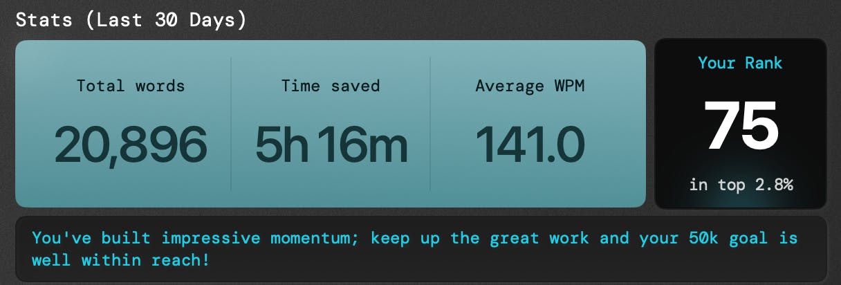 I've been using Monologue since it was in early access and I'm in the top 2.8% of users!
