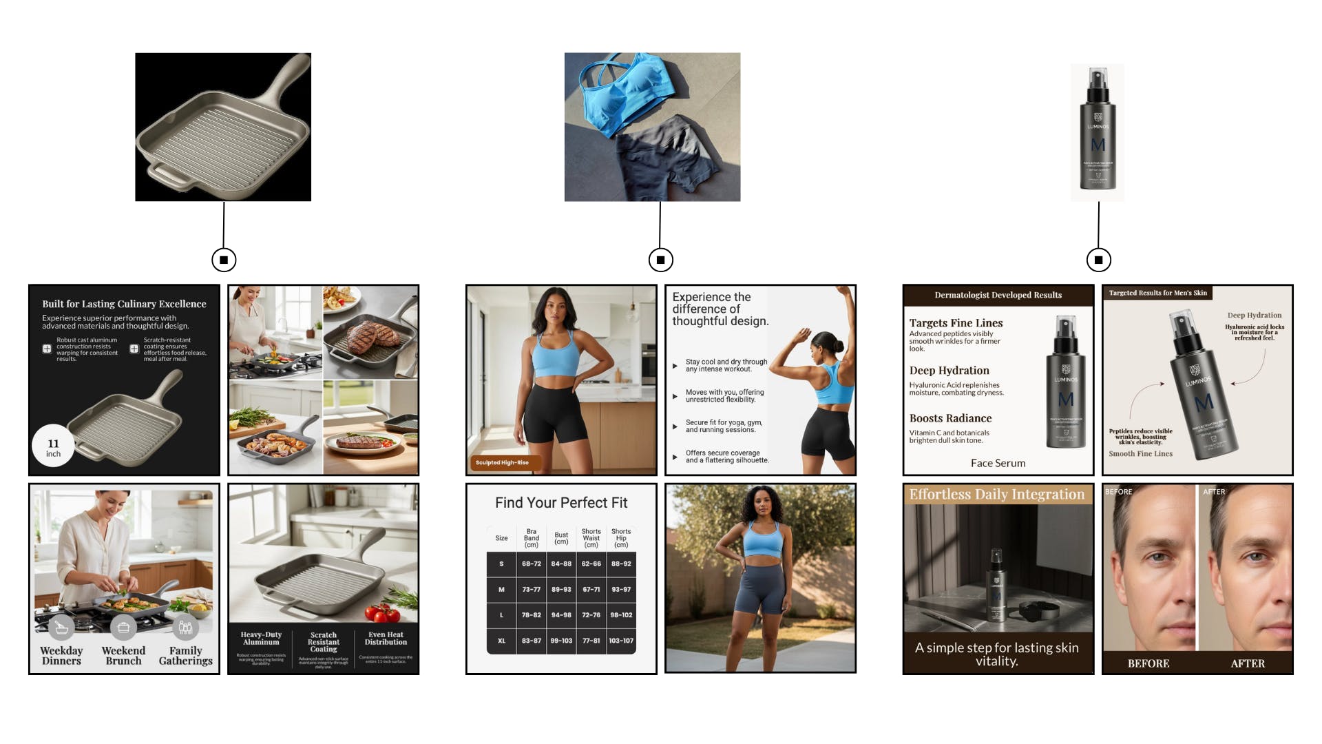 Generate ecom product images and copy in minutes. The AI design agent thinks, recommends, and builds tailored visuals and text for you. Fully editable, personalized, and ready to boost sales. It's a conversion-focused system built around ecom best practices.