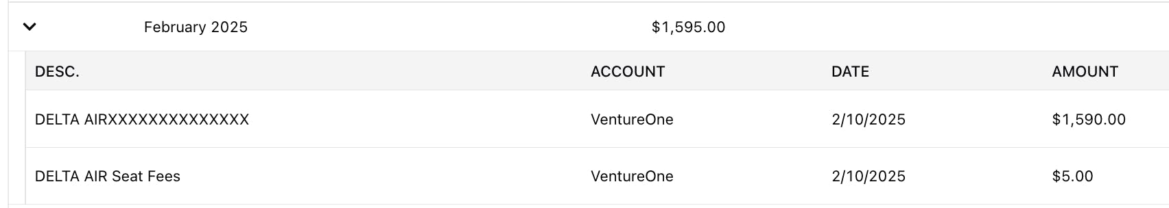 So flights for my partner and I for the holidays, a flight to Europe, and a bunch of campsites that I booked for time I spent in Yosemite.