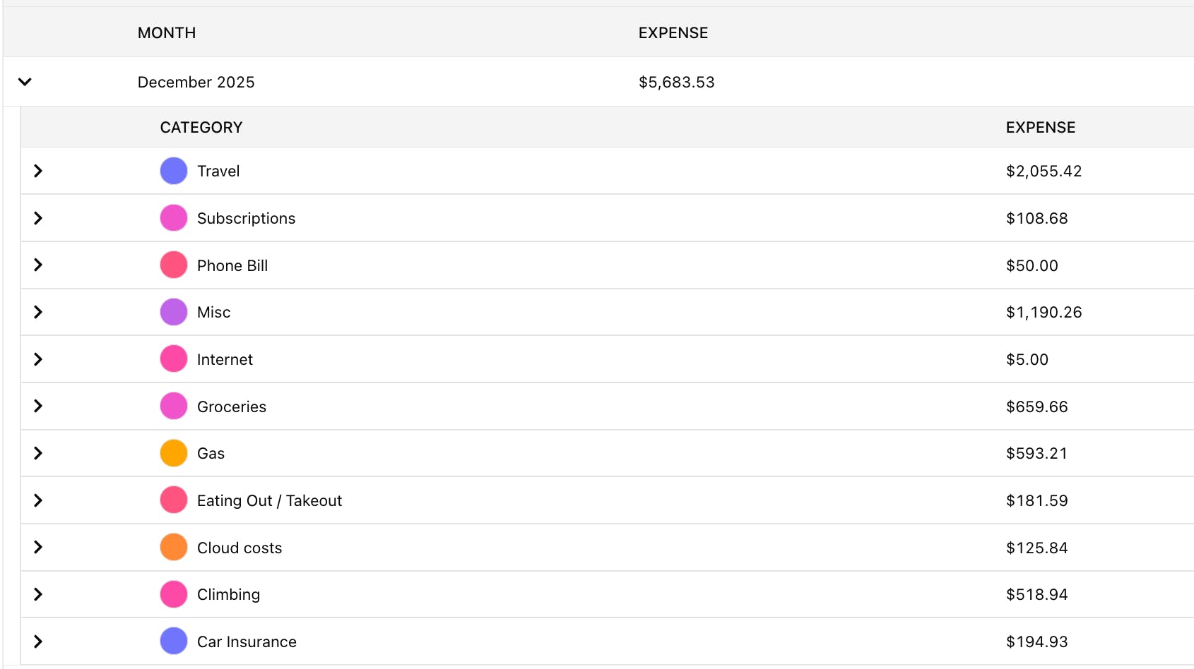 Because it is really easy, I’m going to do a deep dive on how I spent money in 2025. (I was able to put this all together in ~10 mins)