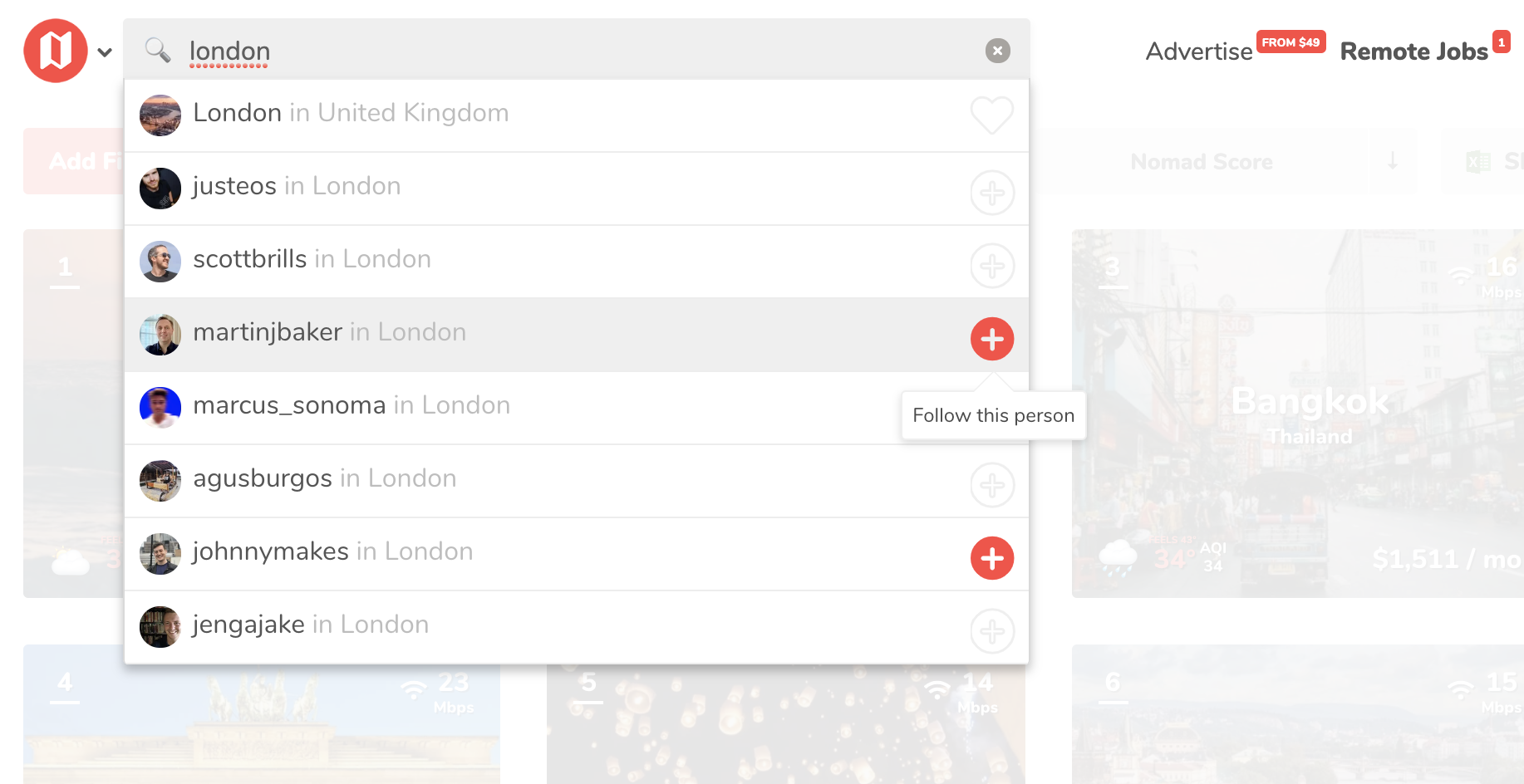 🎟Startups can now advertise on the site with friendly non-intrusive text ads for pretty cheap. This also supports the site and helps monetize it a bit more. Also jobs from Remote OK are reposted to Nomad List to help more people find remote work: https://nomadlist.com/promote