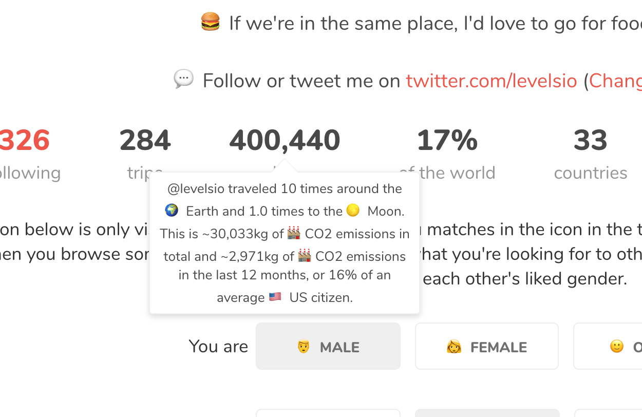 I've also added CO2 emissions to Nomad List profiles, so you can see how much you're emitting and can consider flying less: