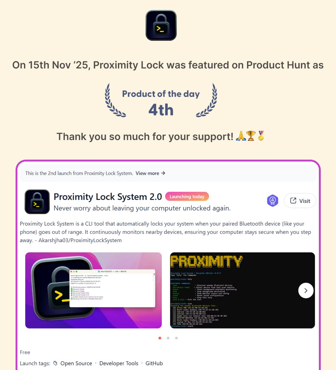 This was the second launch of Proximity Lock, and I’m continuing to iterate based on real usage feedback.