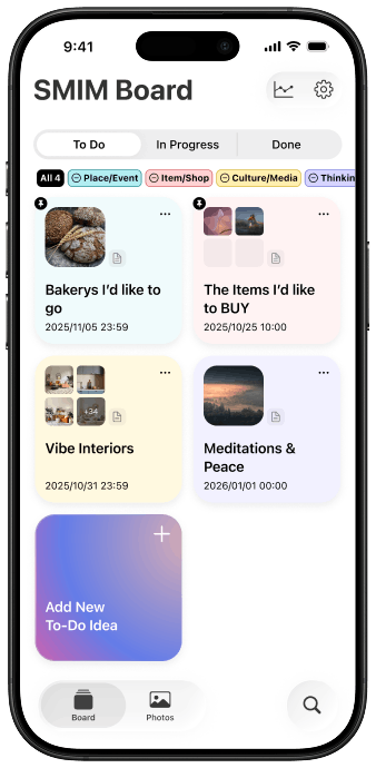 SMIM is a concept system that uses AI to classify your saved images by intention — like “to buy,” “to watch,” or “to revisit.” It then turns them into tasks and helps you track them in a fluid, planner-like interface.