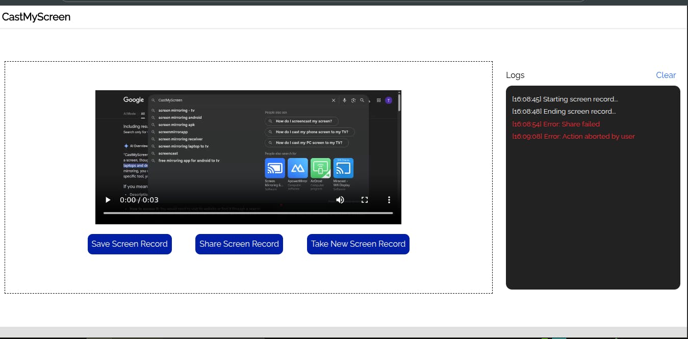 CastMyScreen is a web-based screen recording tool for laptops/desktops, I built it because I have had experiences where taking screen recordings on these devices may not be available in some cases.