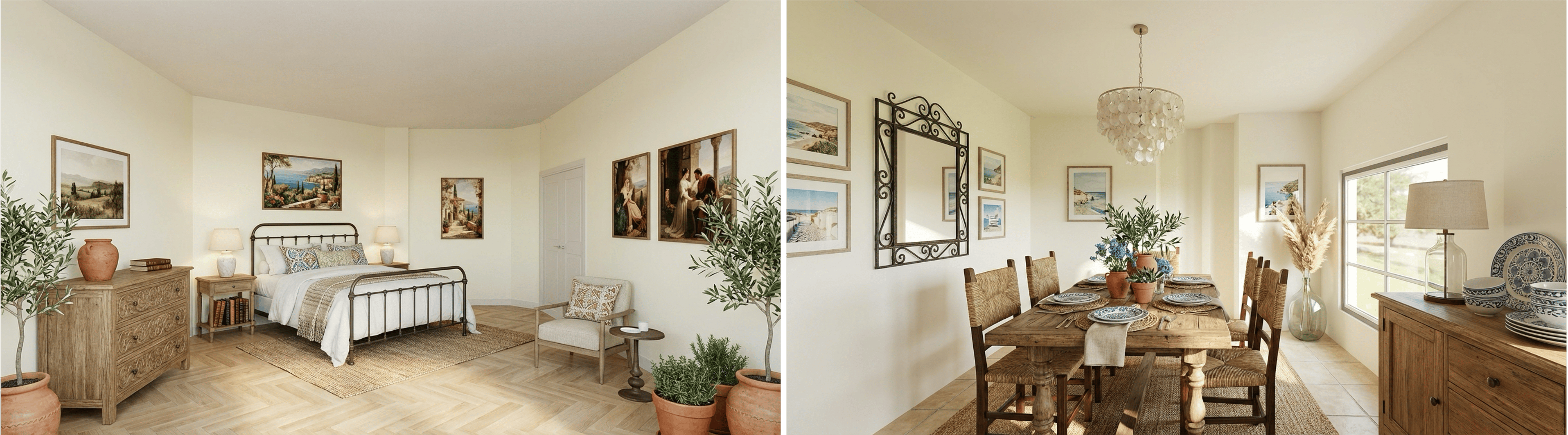 Designers upload floor plans. Our AI generates interior design 3D visualization with accurate room dimensions, ceiling heights, and spatial proportions. They can test multiple furniture arrangements, try different design approaches, and create photoreal renders that show clients exactly what their space will look like.