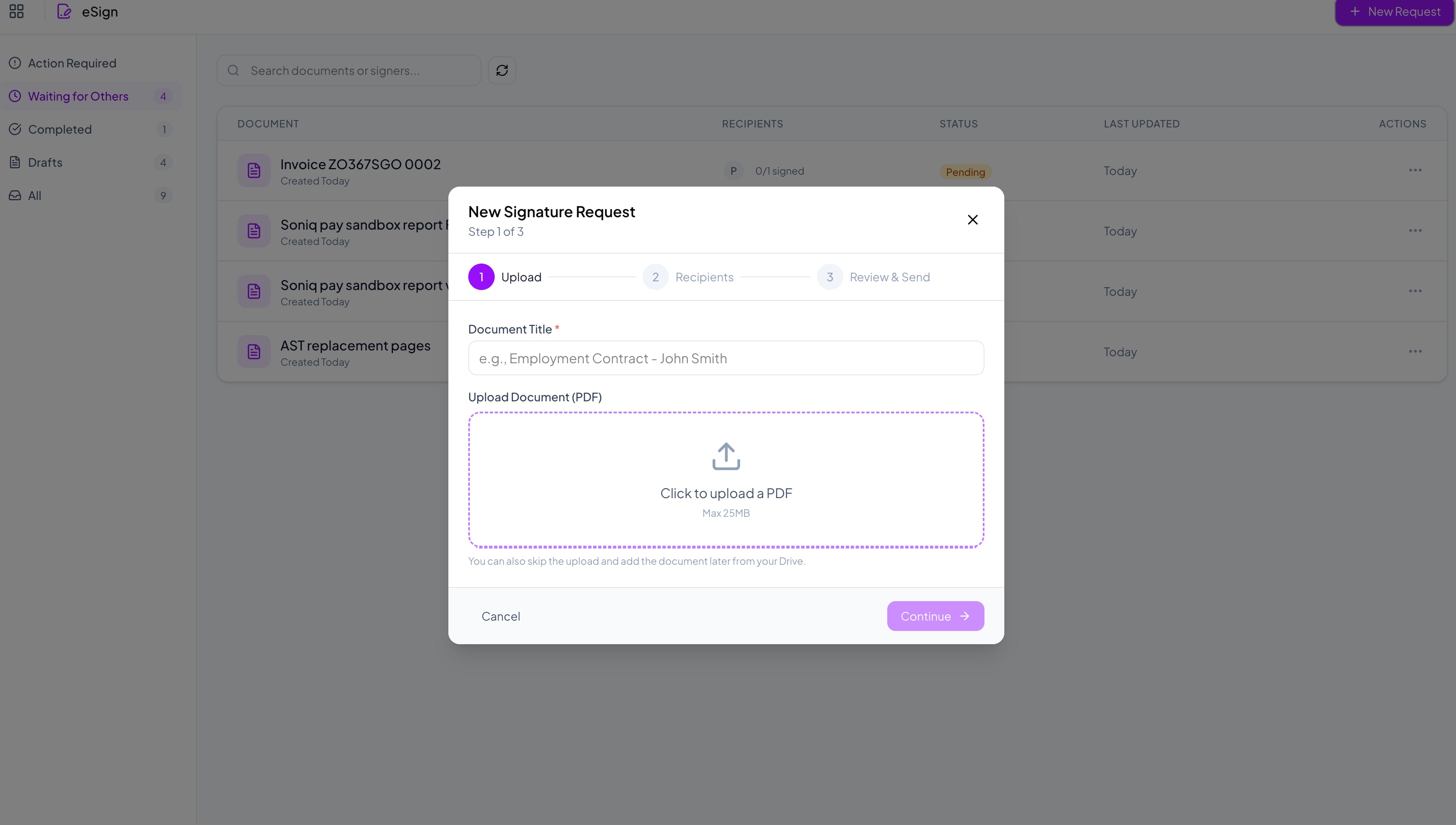 Added e-signatures as part of the B2B features. Unlimited document sending. Stored in S3 compatible storage with WORM and OBJECT Lock. Fully trackable actions and flow.