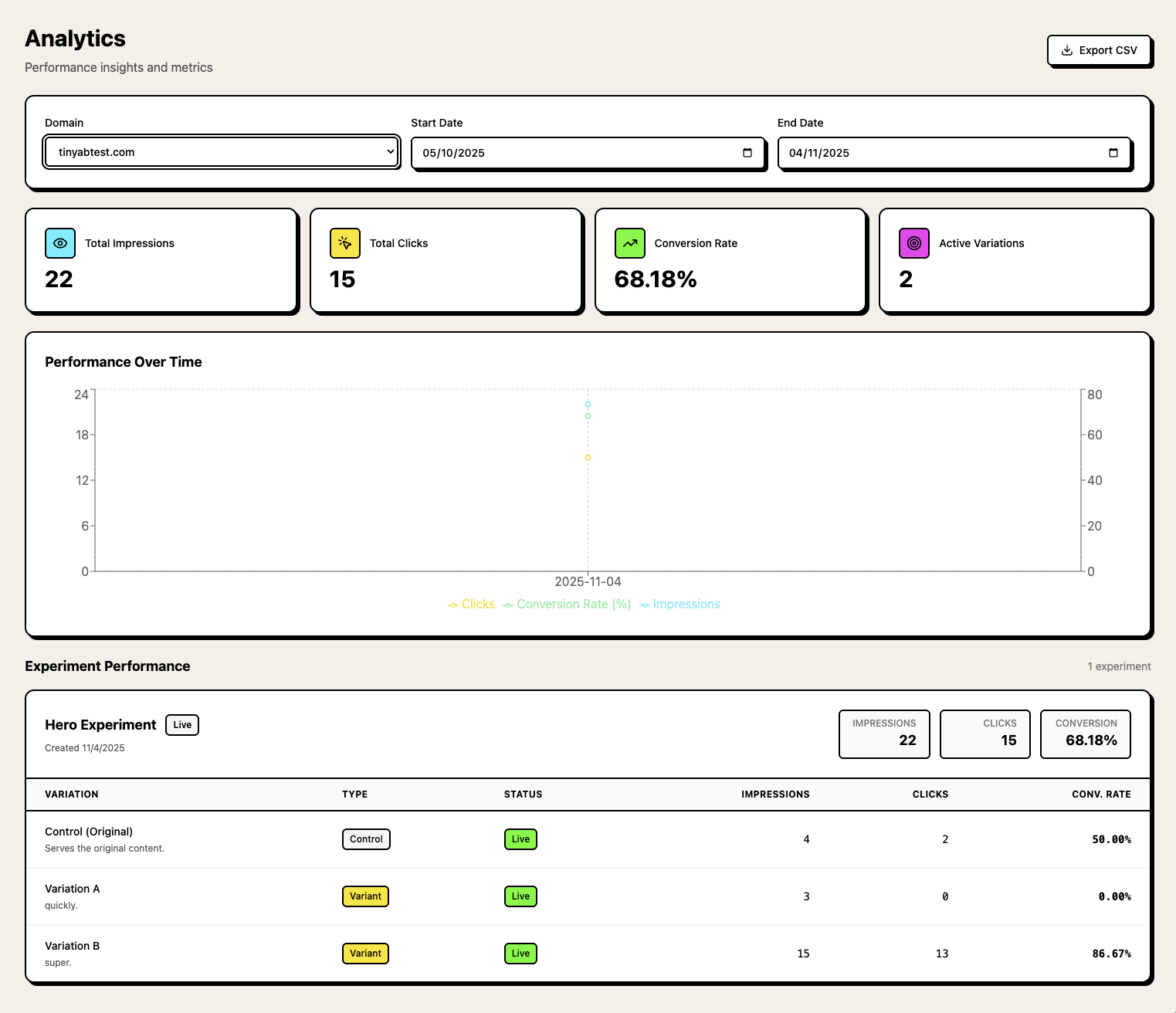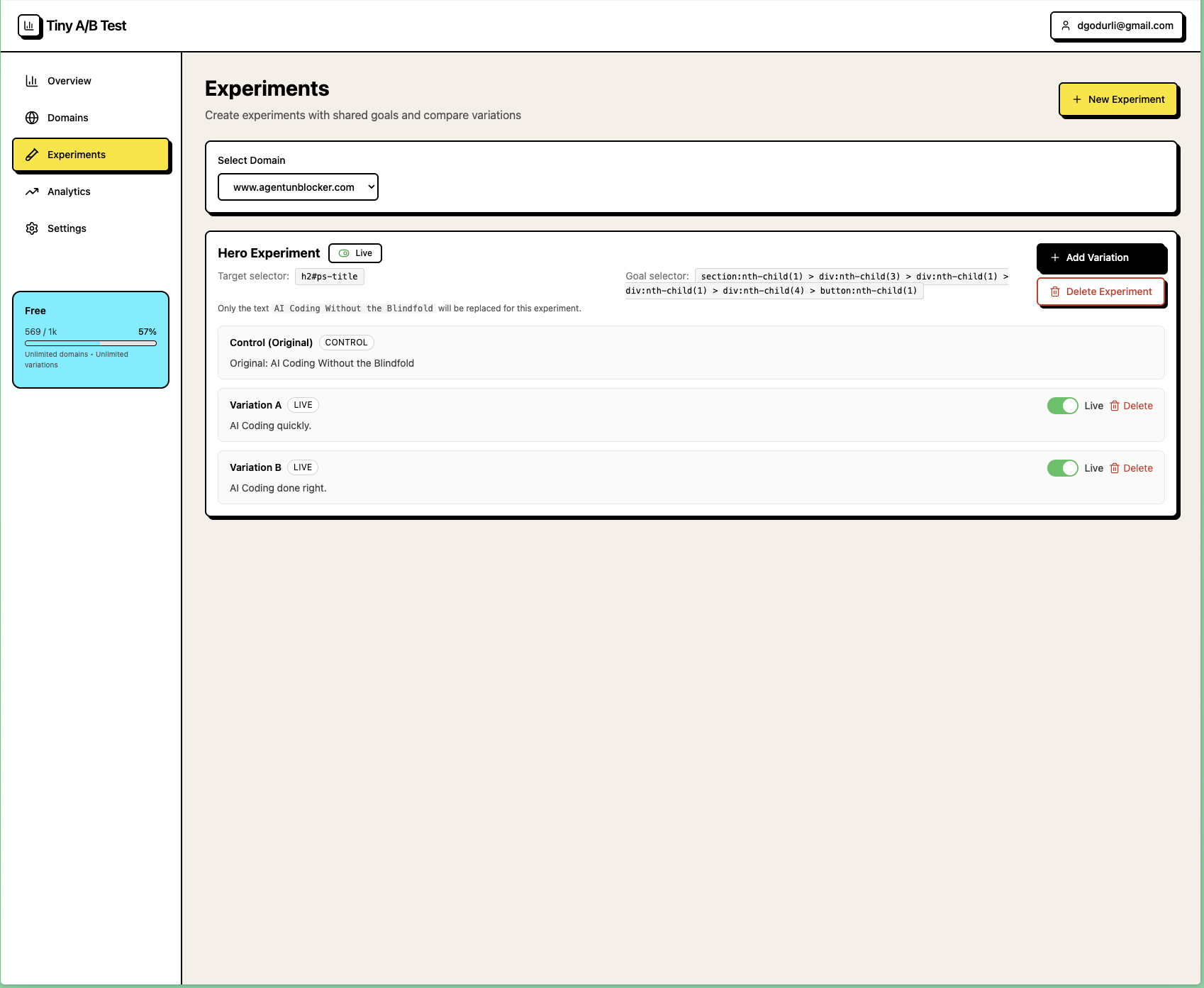 Tiny A/B Test now supports Experiments, a new way of testing!