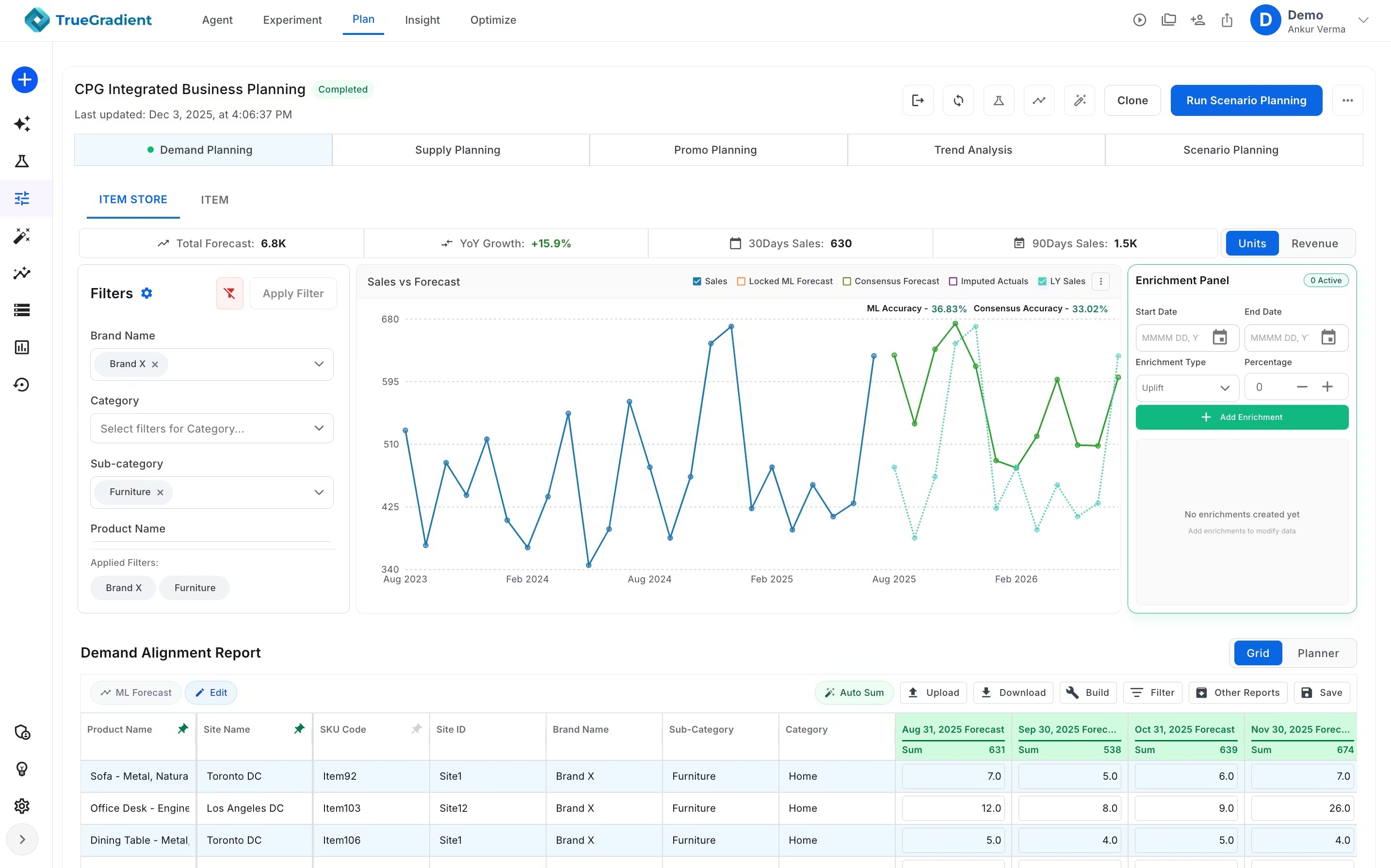 Self-serve AI-native platform for Demand, Supply, Promotion Planning (Integrated Business Planning) and Offer Personalisation. Reinforcement Learning based Planning system to enable Human-AI collaboration