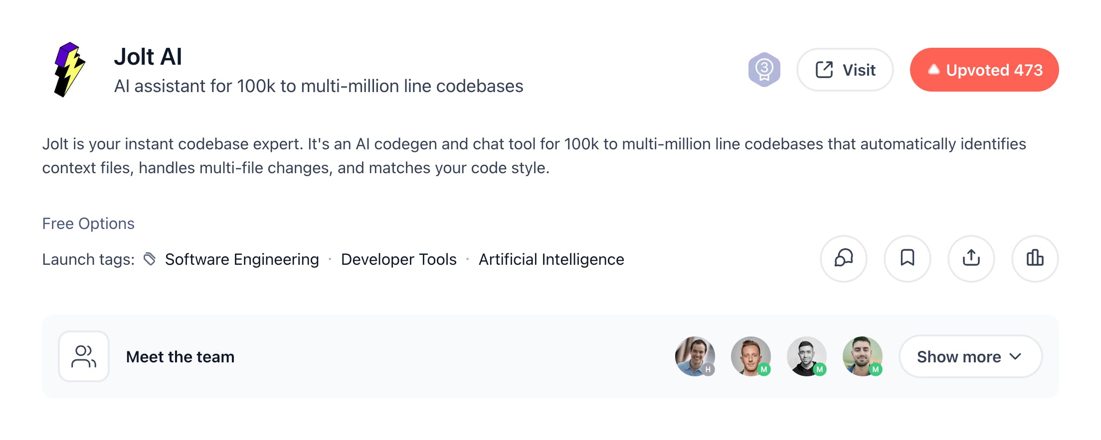 Jolt AI launched on Product Hunt last January — among the best developer tools launched in 2025 in my opinion.