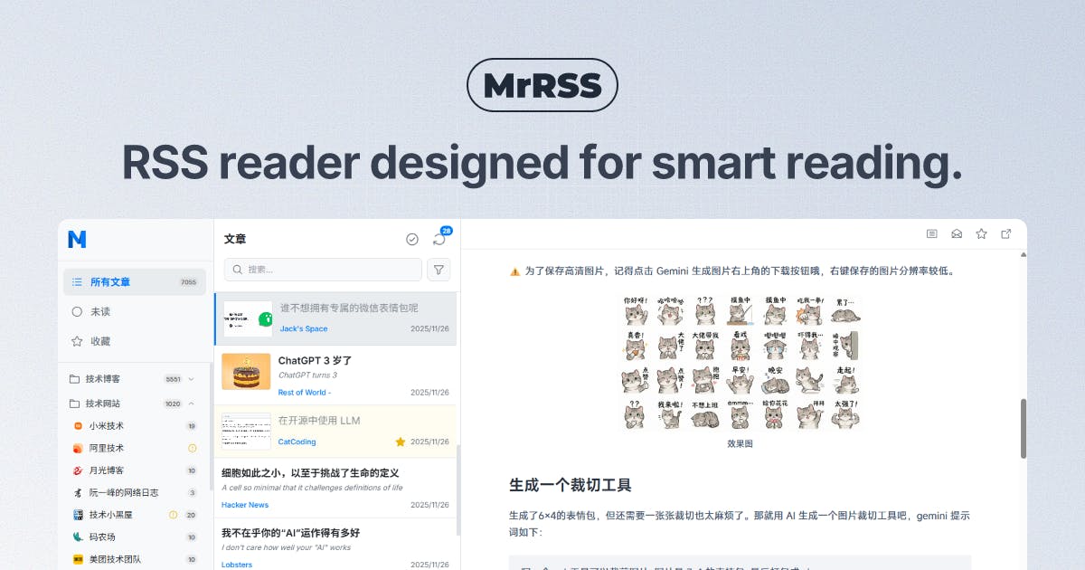 I know that not many people use RSS anymore, so large companies haven't developed much in this field, and smaller products often lack certain functionalities. However, RSS is essential for the work efficiency of many people, as it ensures we can efficiently read information sources, which is why I built one myself.