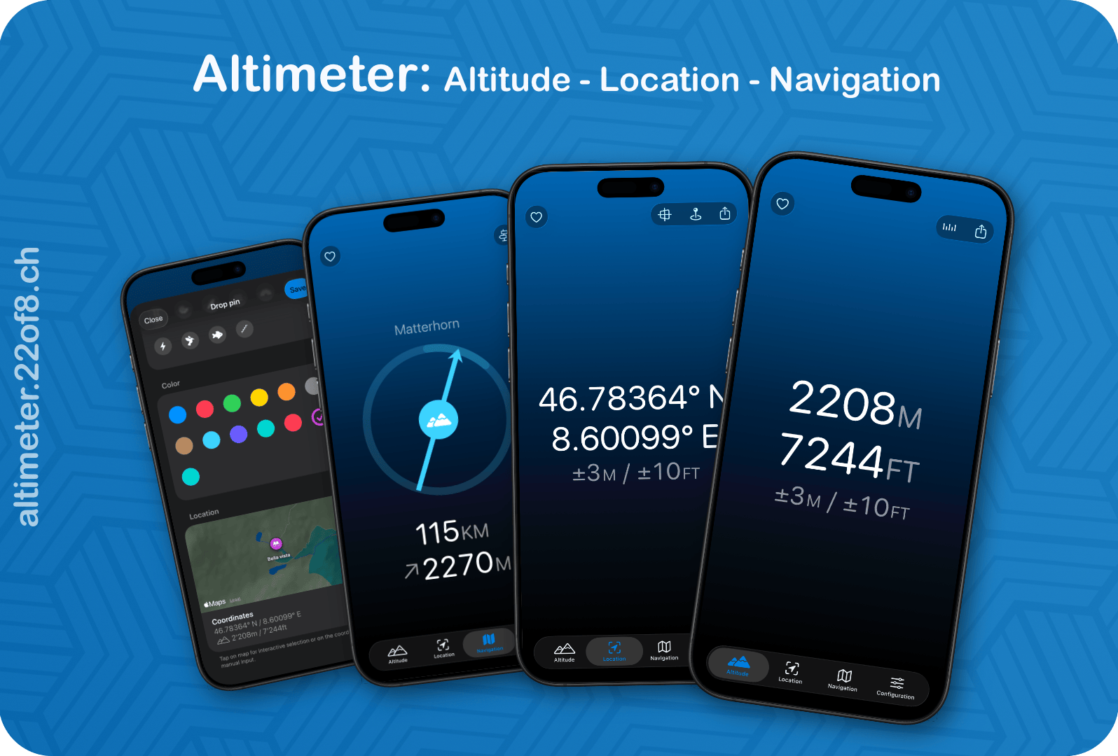 Measure heights. Remember routes. Stay free. Altimeter.