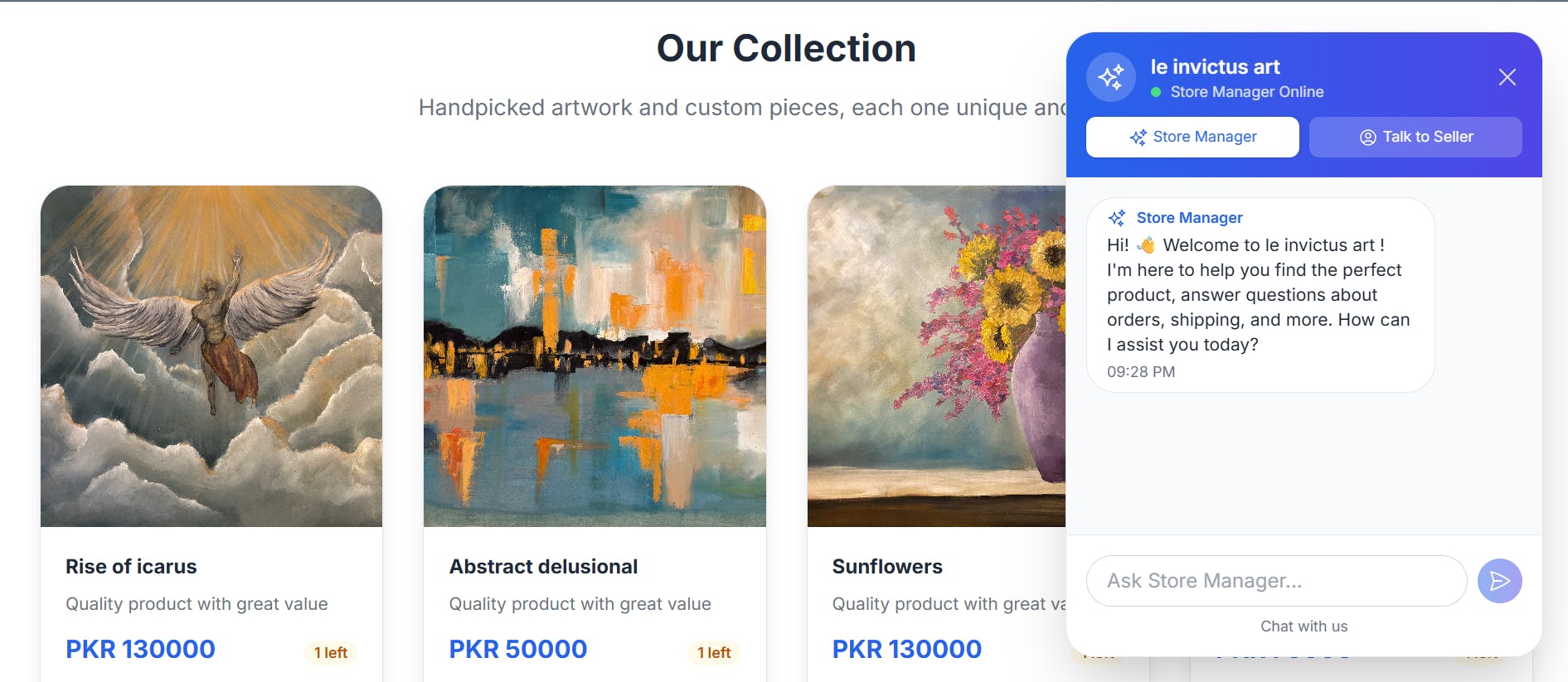 Each account includes a personal AI Store Manager, your built-in assistant that helps answer customer queries, gives business insights, and automates tasks. Try it free for your first month!