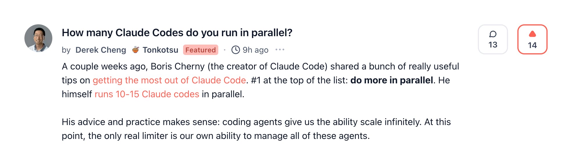 @derekattonkotsu started a poll after @Claude Code maker, Boris Cherny, shared some pro tips to get the most out of it. Above all? Run more agents in parallel.