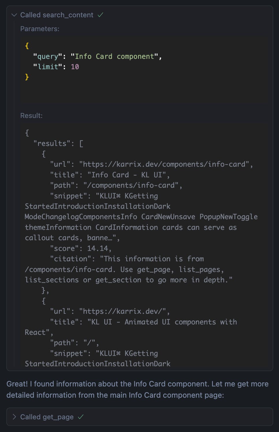 On my app doqment.dev I noticed LLMs typically start using search_content tool in hopes for direct content referrals, so I just improved it!