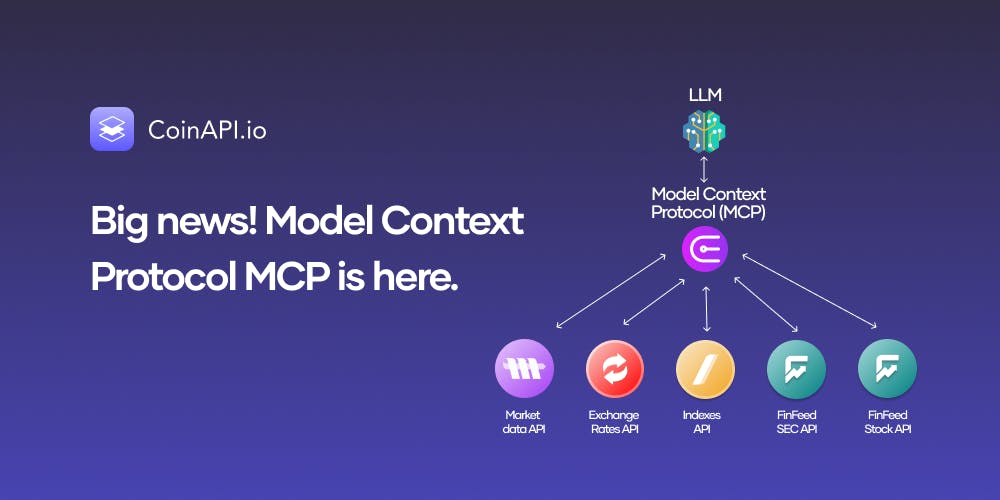 Model Context Protocol (MCP) integration across all CoinAPI services (Market data API, Flat Files, Exchange Rates)- think of it as a universal translator that lets all crypto APIs speak the same language.