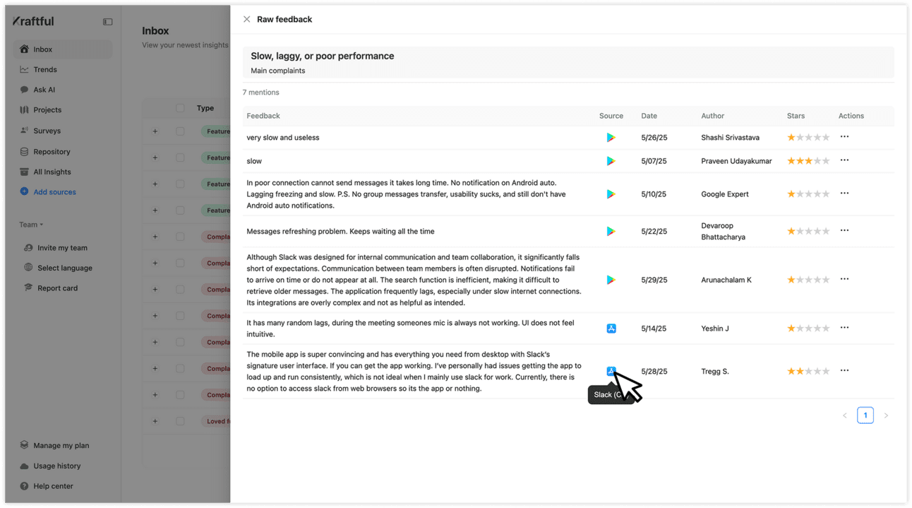 But if you’re ever curious about an insight’s origin, just click the mention number. You’ll see verbatim mentions along with their sources.