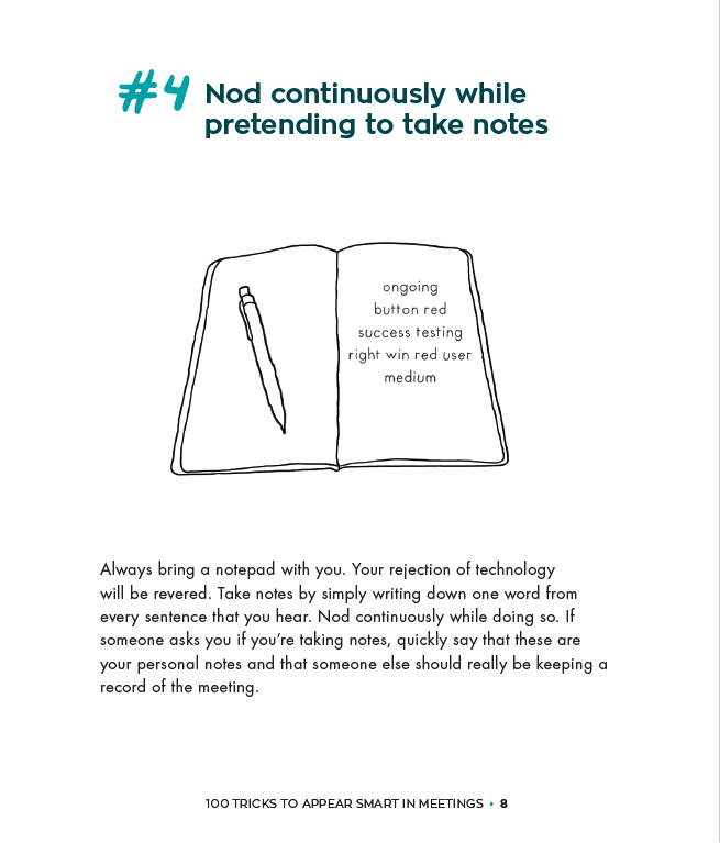 Funny because it's true. Too true. The author Sarah Cooper is a mad-woman (and a genius). She wrote "10 Tricks to Appear Smart in Meetings" with 5+ million views and now this. It's madness (and makes me laugh tears). Check it out. You'll learn how to appear smart in less than half the time it takes to actually learn anything. Plus, it makes the perfect gift … See more